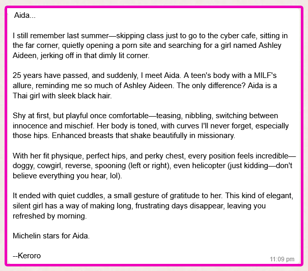 MMF 3P(Tip), Anal(Tip), CumInMouth(Tip), Ass-Rimming(Tip), CumOnBoobs(Tip), CumOnFace(Tip), RAW(Tip), French-Kiss, BB-BlowJob, FuckJob, DATY, 69